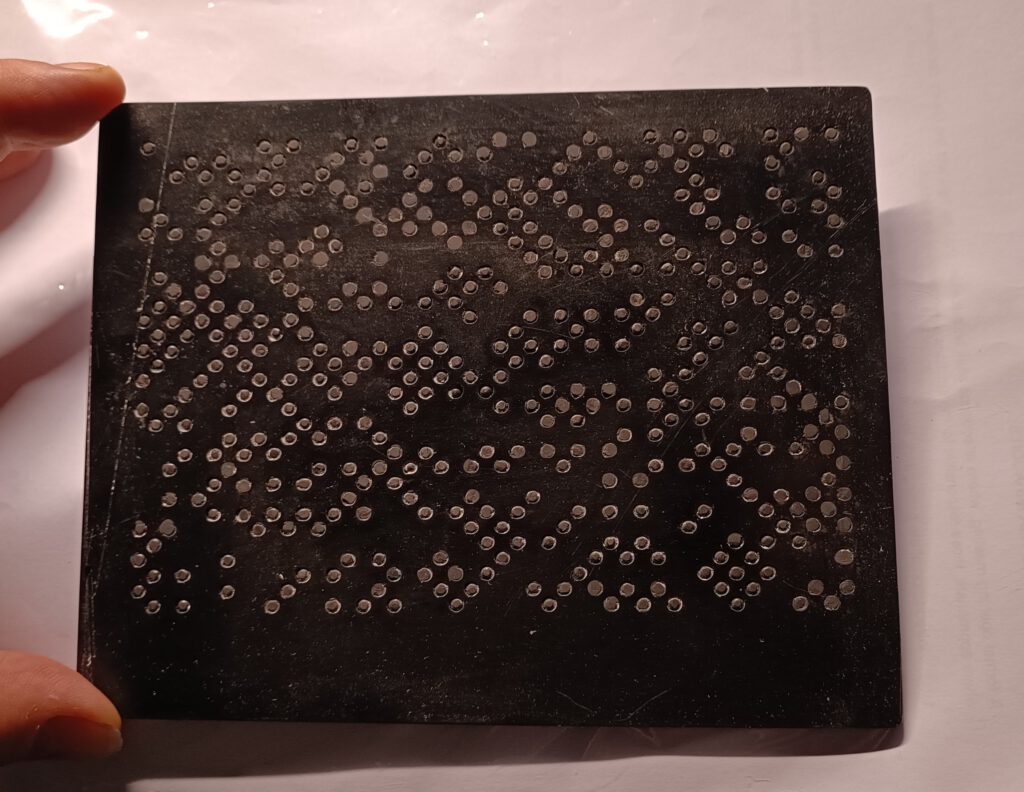 Prototype DotCode-plate with contact informations, for low-res scanners, 3 mm dots